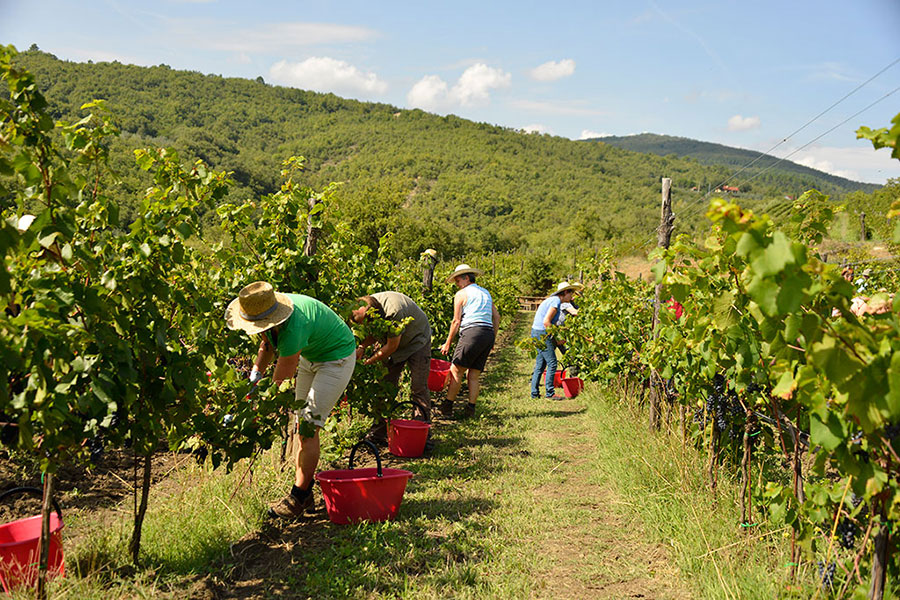 18 juni, het pleintje van La Vialla: het is feest op de Fattoria, de komst van het eerste graan dat is geoogst op de akkers wordt gevierd net als… de nieuwe jaargang van de Birborosso! Deze wijn, een slimme rode die zich ‘gedraagt’ als een witte (op de video legt Marco Cervellera beter uit waarom), is nog maar net gebotteld. Heerlijk koel begeleidt hij de pizza, in een duet dat in plaats van birbo, kwajongen, meer weg heeft van ‘diabolico’, duivels. Hierbij een beschrijving van de nieuwe jaargang, het recept van de pizza en wat indrukken van het feest, met de gasten, de koks, de bakkers en een fotograaf-pizzabakker. Allemaal samen aan de slag met kneden, bakken, en...ontkurken!
