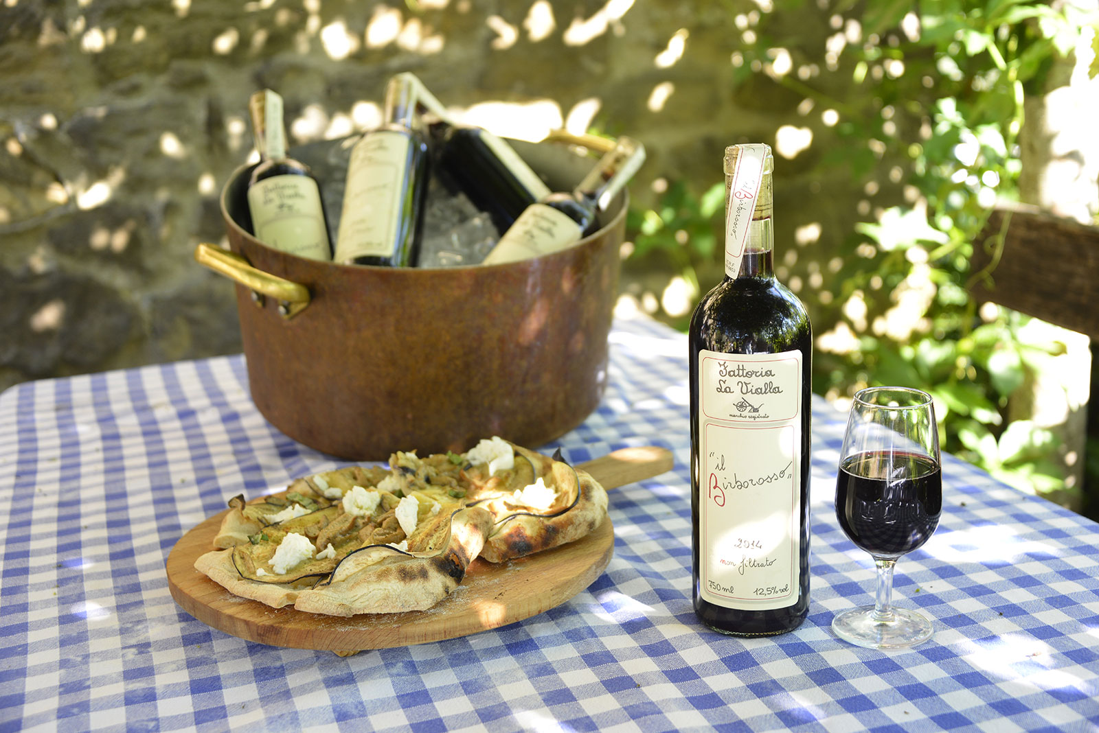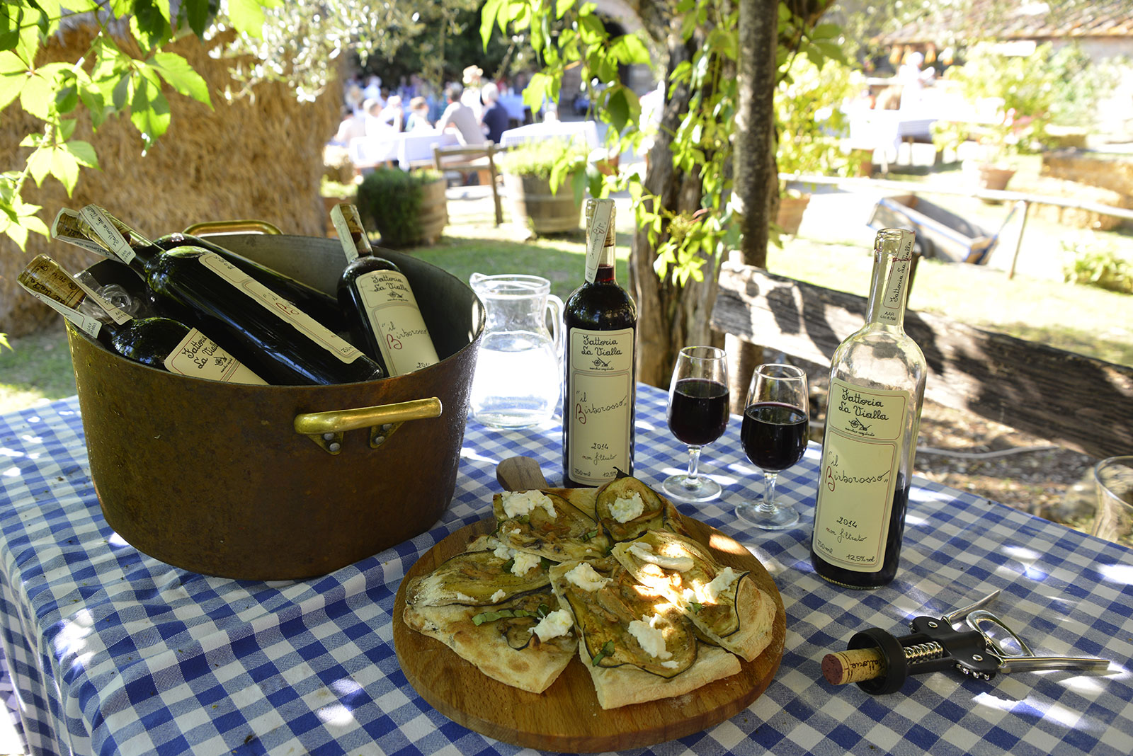 18 juni, het pleintje van La Vialla: het is feest op de Fattoria, de komst van het eerste graan dat is geoogst op de akkers wordt gevierd net als… de nieuwe jaargang van de Birborosso! Deze wijn, een slimme rode die zich ‘gedraagt’ als een witte (op de video legt Marco Cervellera beter uit waarom), is nog maar net gebotteld. Heerlijk koel begeleidt hij de pizza, in een duet dat in plaats van birbo, kwajongen, meer weg heeft van ‘diabolico’, duivels. Hierbij een beschrijving van de nieuwe jaargang, het recept van de pizza en wat indrukken van het feest, met de gasten, de koks, de bakkers en een fotograaf-pizzabakker. Allemaal samen aan de slag met kneden, bakken, en...ontkurken!